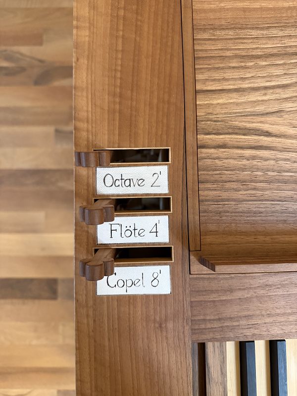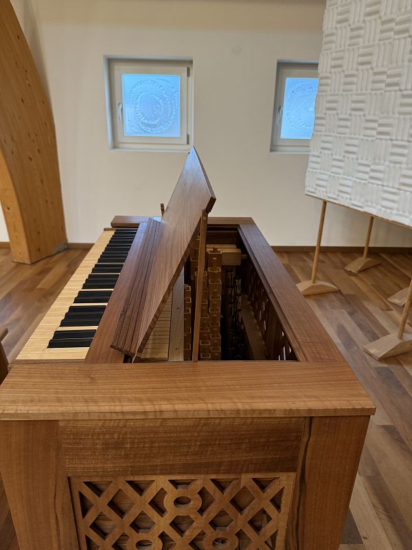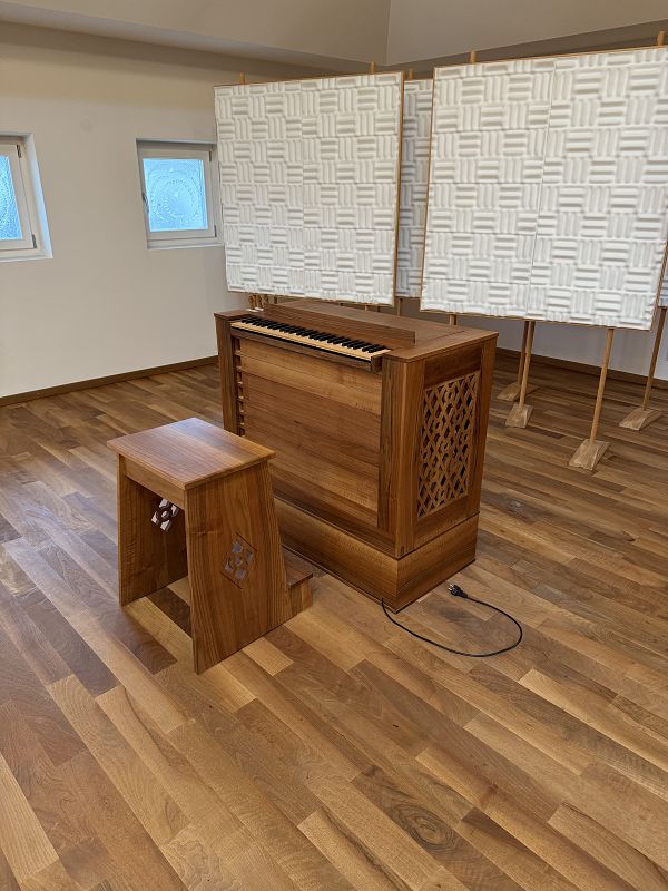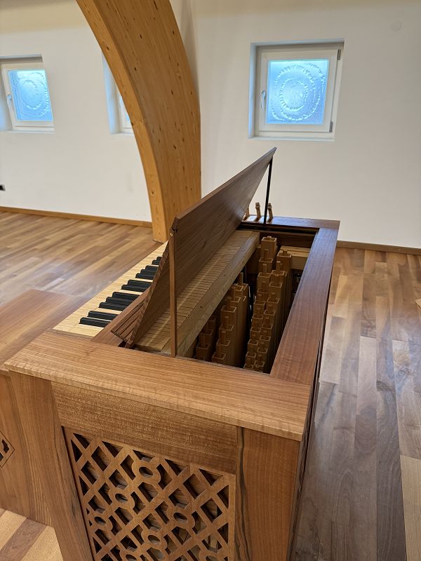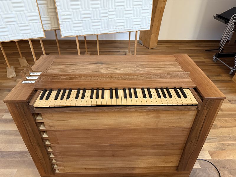 | Spielhilfen | Transponiervorrichtung für 415 Hz, 440 Hz, 465 Hz. Das zweiteilig gebaute Instrument wurde dem Benediktiner-Konvent von Muri-Gries geschenkt und am Tag der hl. Cäcilia 2025 eingeweiht. |